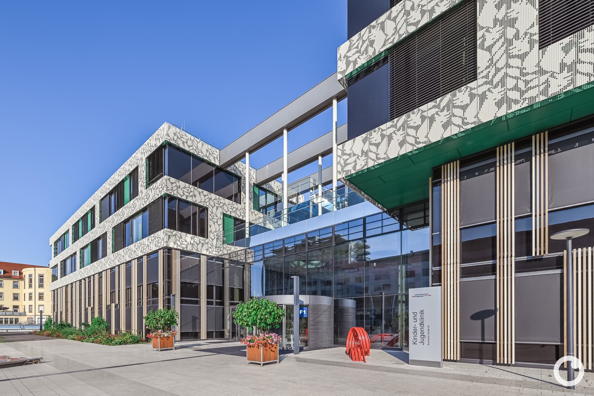 Die neue Kinder- und Jugendklinik vereint medizinische Versorgung, Forschung und Lehre unter einem Dach. Die Architektur zeichnet sich durch helle und farbenfrohe Räume, klare Strukturen und eine freundliche Gestaltung aus, die auf die Bedürfnisse junger Patientinnen und Patienten zugeschnitten ist. Mit ihrer modernen Fassade bildet die Klinik ein markantes Entrée im westlichen Bereich des Universitätsklinikums.