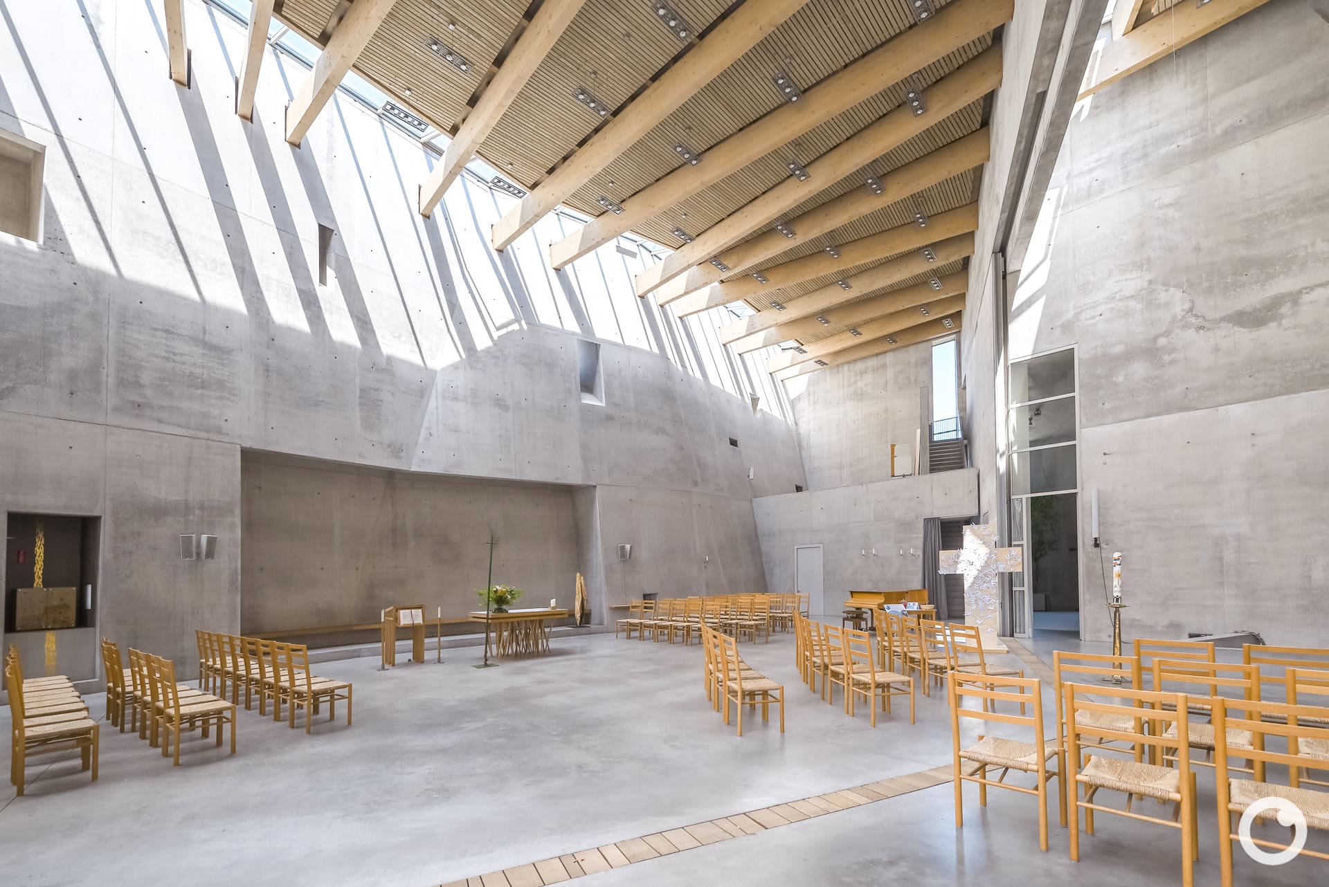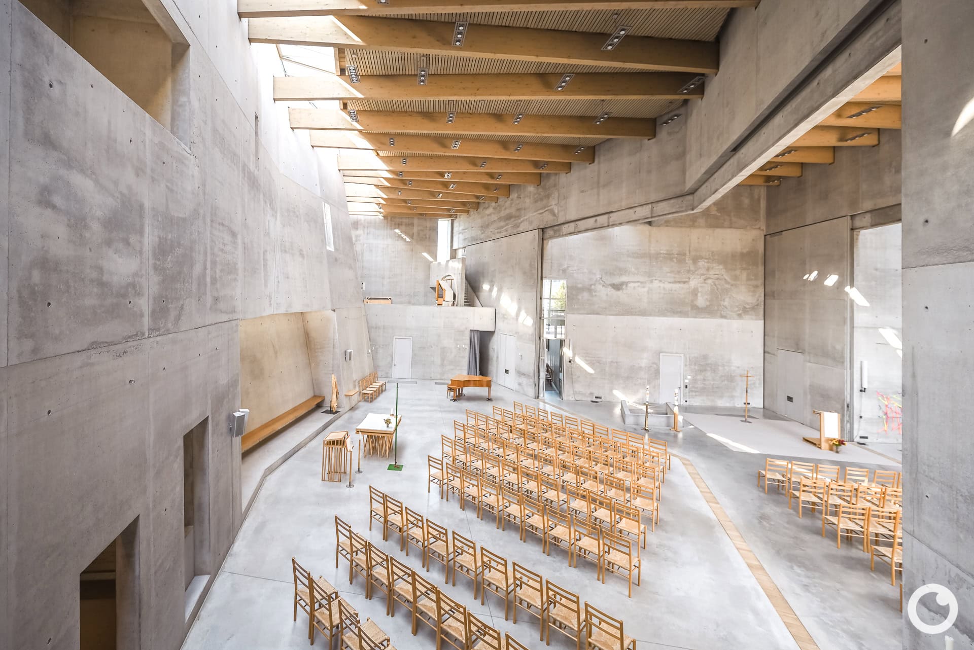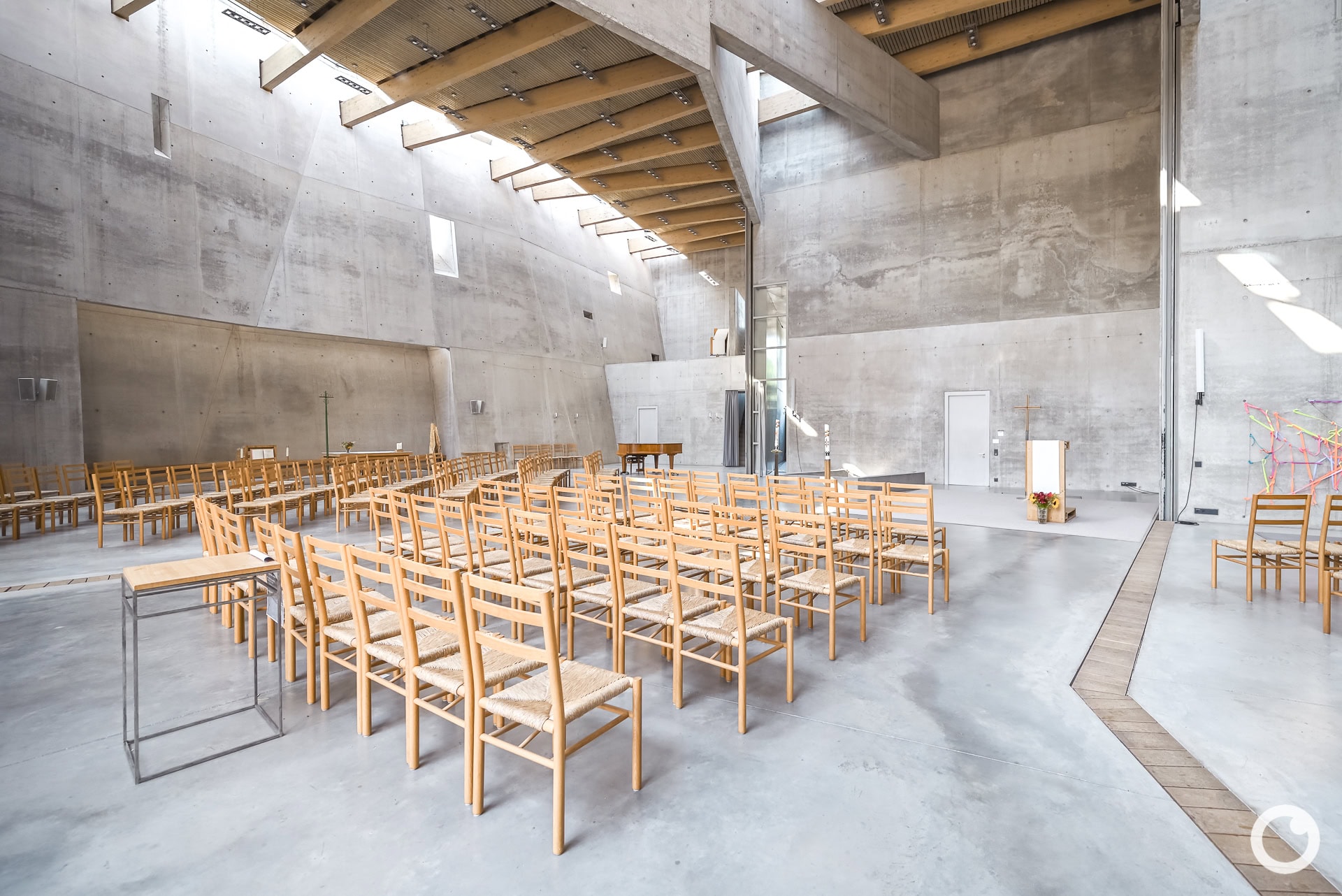 Besonderheiten: Skulpturale Sichtbetonarchitektur, ökumenisch genutzter Kirchenraum
